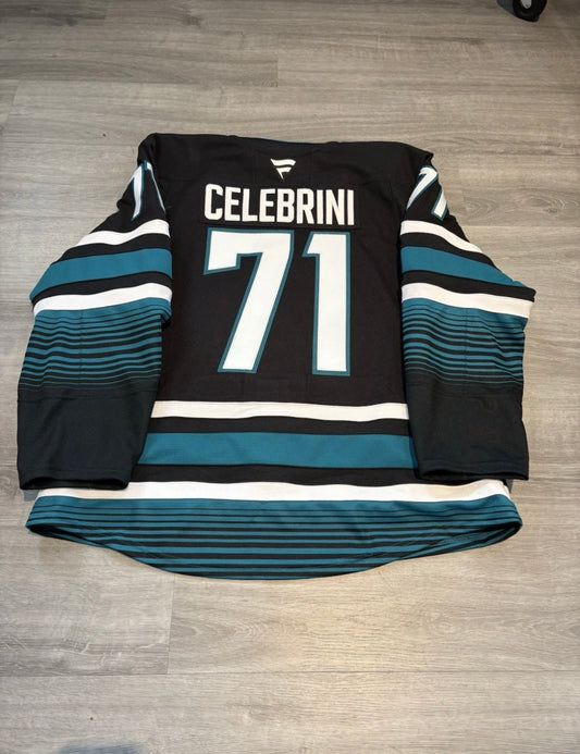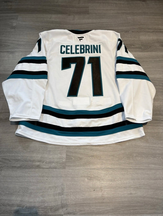 Macklin Celebrini San Jose Sharks 2024/25 Game Worn Photo Matched Away Jersey